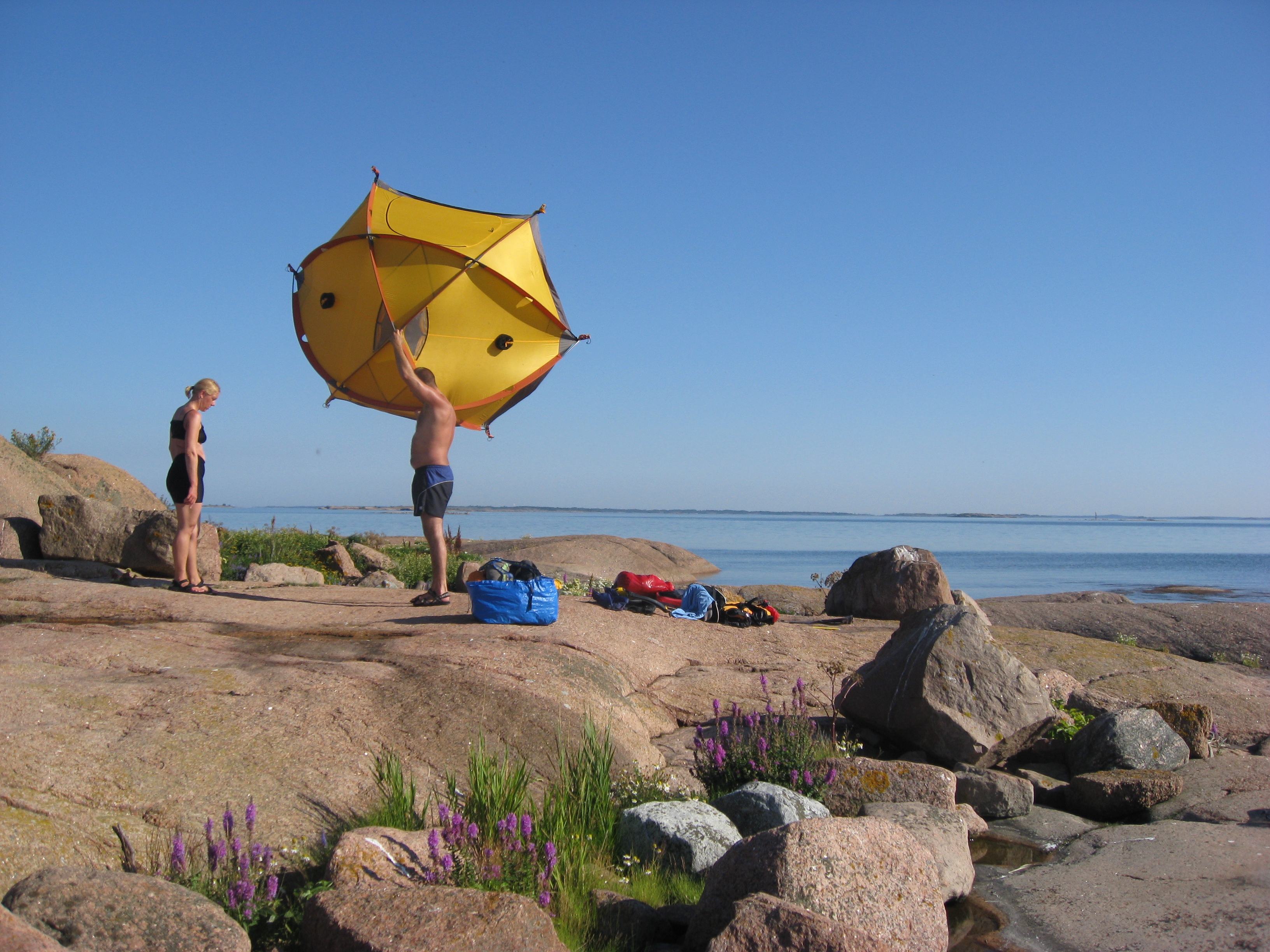 Magnus vilar sig i kvällssolen. Att sätta upp tält kräver sin man.