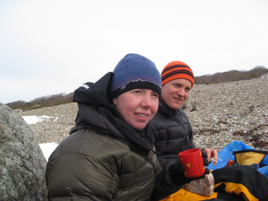 Inte mycket vind att tala om, men ändå skönt att kura bakom en klippa.