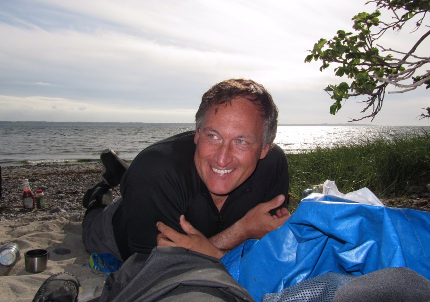 Magnus har det gott i kvällssolen.