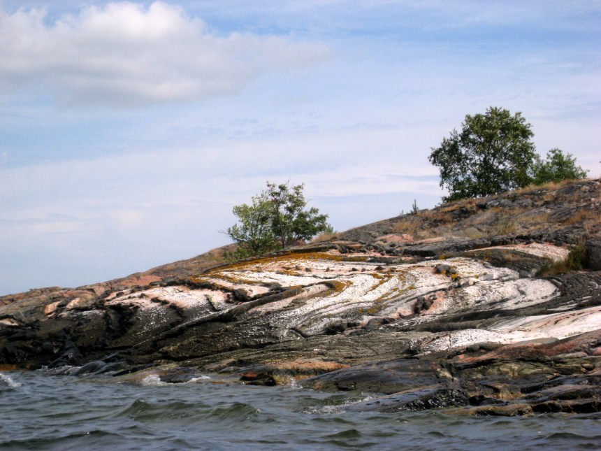 Märkliga formationer av rosa kvarts på Aspöja.
