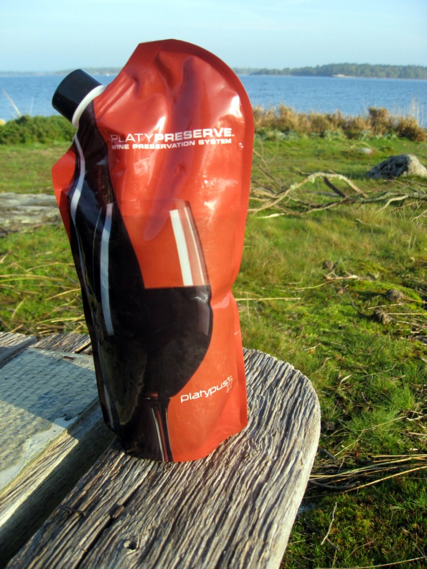 Från Platypus kommer den här behändiga flaskan för vintransport – hittade den på Naturkompaniet. Korka upp hemma och tappa över favoritvinet till plastflaskan. Du slipper oroa dig för att slå sönder något under transporten. Inget drällande av tomflaskor i naturen heller! Bra va!