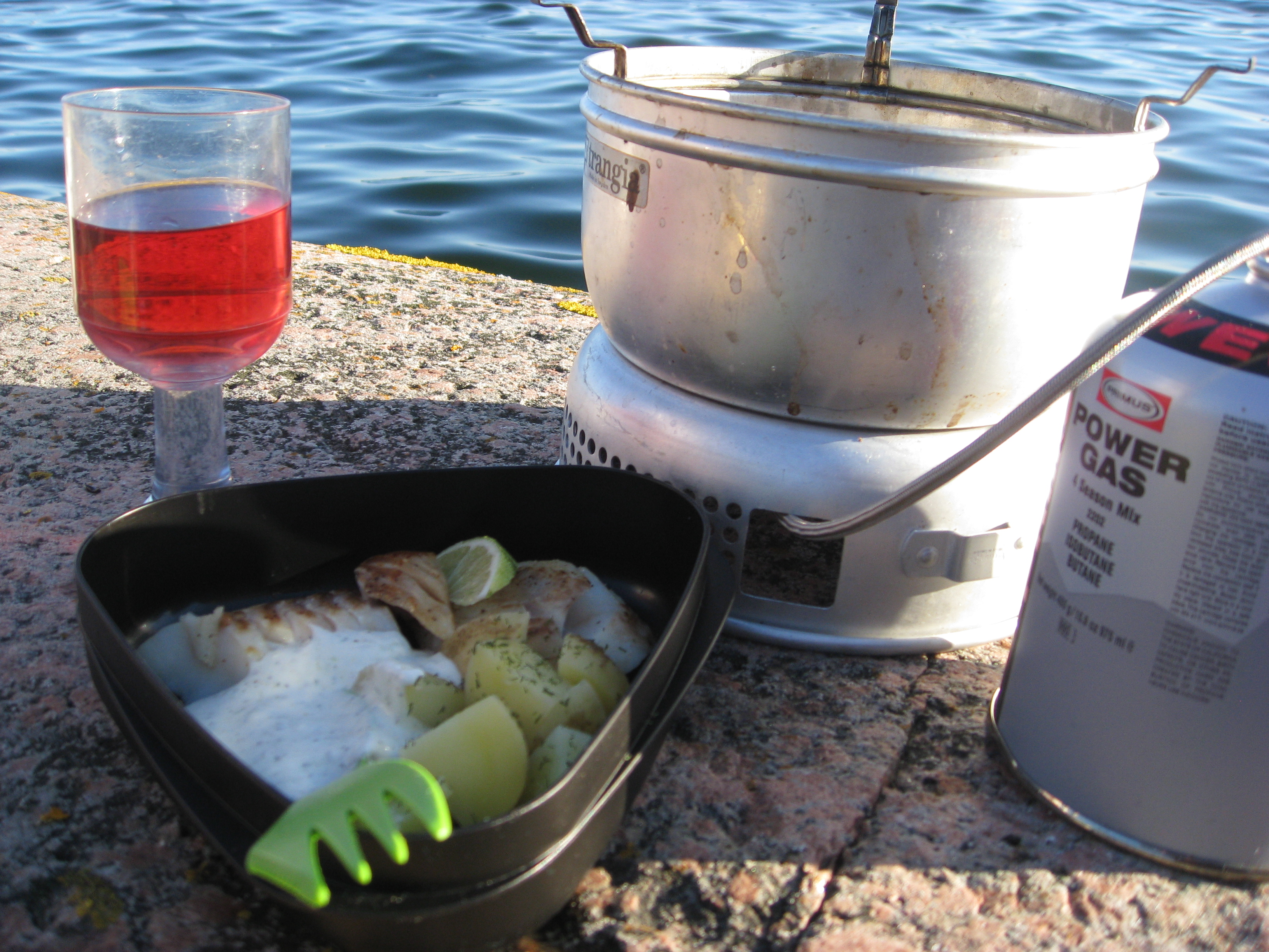 Enkel god rätt som funkar första dagen på paddelturen – stekta torskfileér med nypotatis och limesås. Under hösten-vintern när det är kallare kan detta t.o.m vara middag andra dagen. Köp fileérna frysta så är de lagom tinade när det är dags för kvällens matpyssel.