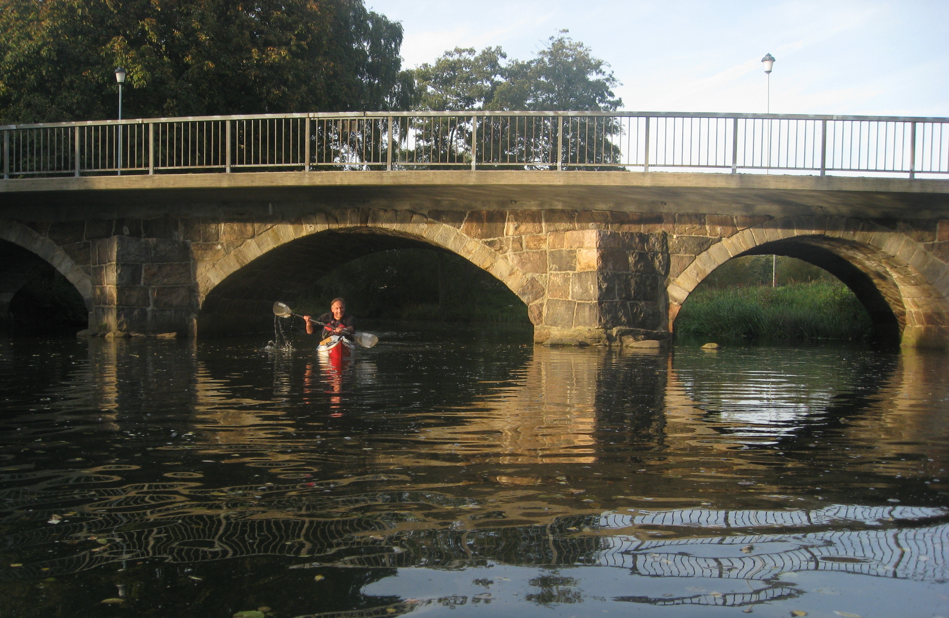 På hemvägen smet vi in om Råå hamn för att plocka cachen GC1VZXF, listigt gömd under bron över Råå-ån. Den har legat retfullt oåtkomlig länge, men nu kunde vi plocka den från kajakerna. Kul! 🙂