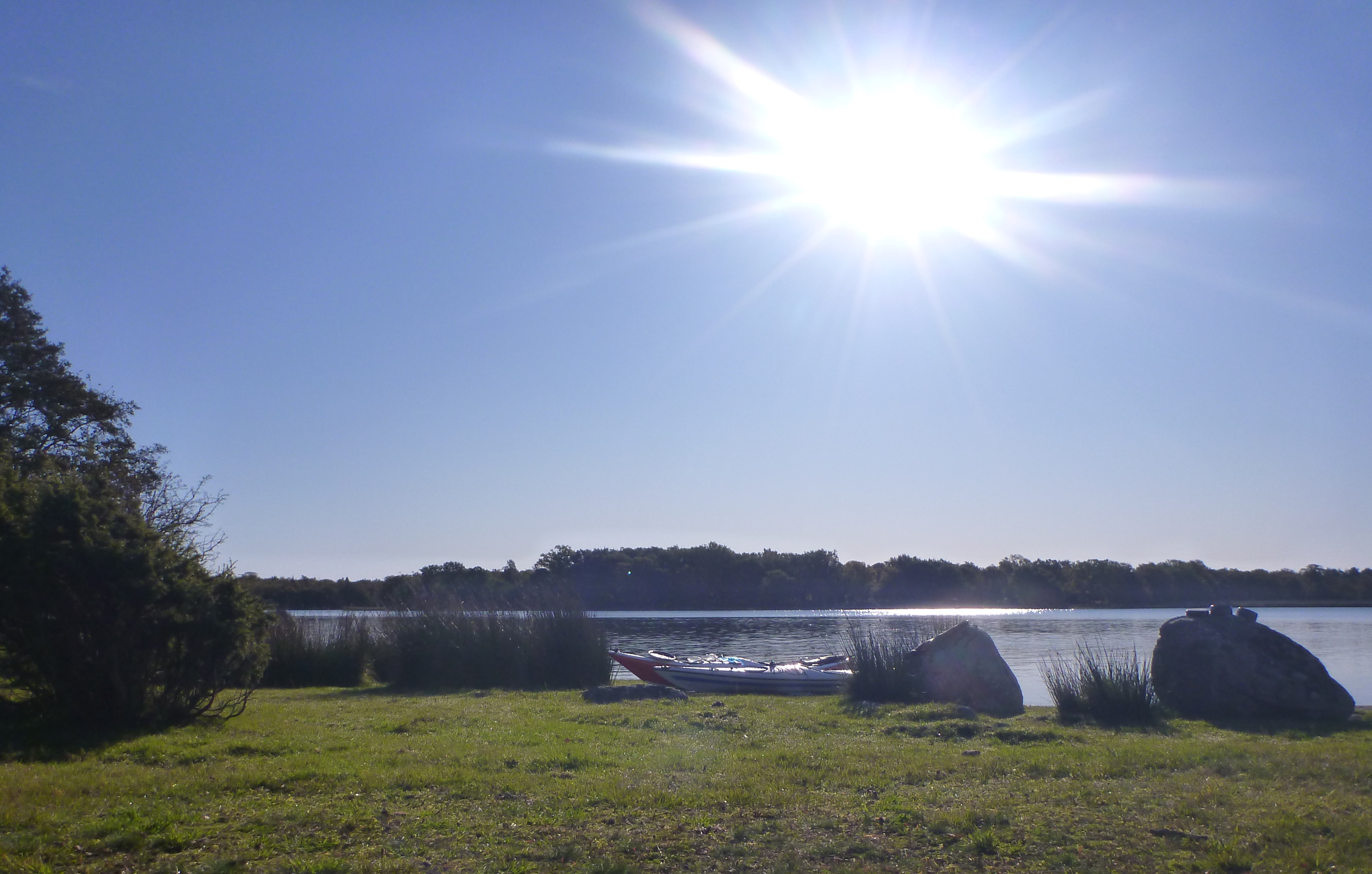 Två danska killar kom på besök. Slog läger på andra sidan udden.