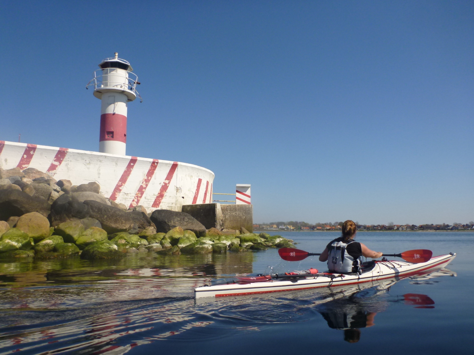 Idag paddlade jag och Gunnel från Mölle till Helsingborg, en nätt liten sträcka på sisådär 3,5 mil. Vädret var ju alldeles fantastiskt med blänkande plattvatten större delen av sträckan. Öresund är inte jättespännande att paddla i, men duger fint för ett rejält träningspass, speciellt en sommarfin dag som denna.