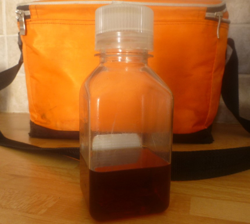 Så här mycket rom blev kvar i flaskan sedan det mesta runnit ut i min IKEA-kasse.