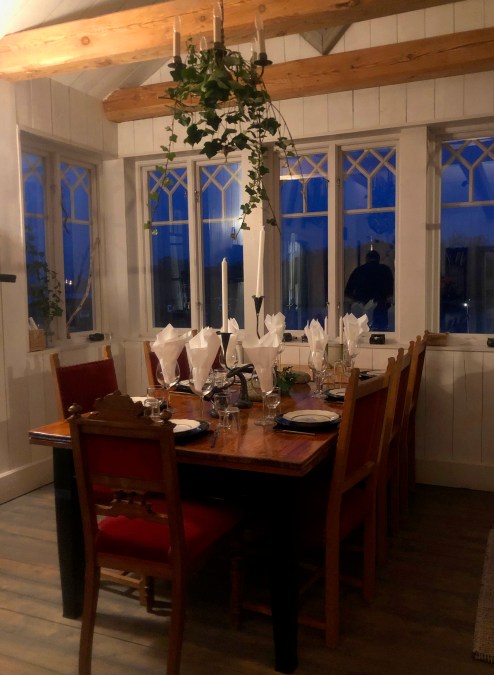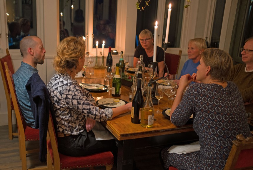 Vi var ett litet tappert gäng på sju som hade bokat in oss på lördagen med middag och övernattning. Tanken var att tälta på Östra Bokö på fredagen, ha 5-6 minusgrader, ett stilla snöfall på eftermiddagen, gnistrande stjärnhimmel på kvällen. Givetvis en mysig brasa. Nu blev det 10-15 sekundmeter sydlig vind och ösregn. Tja… ni fattar… Det blev alltså direktpaddling till Joggesö på lördag em.