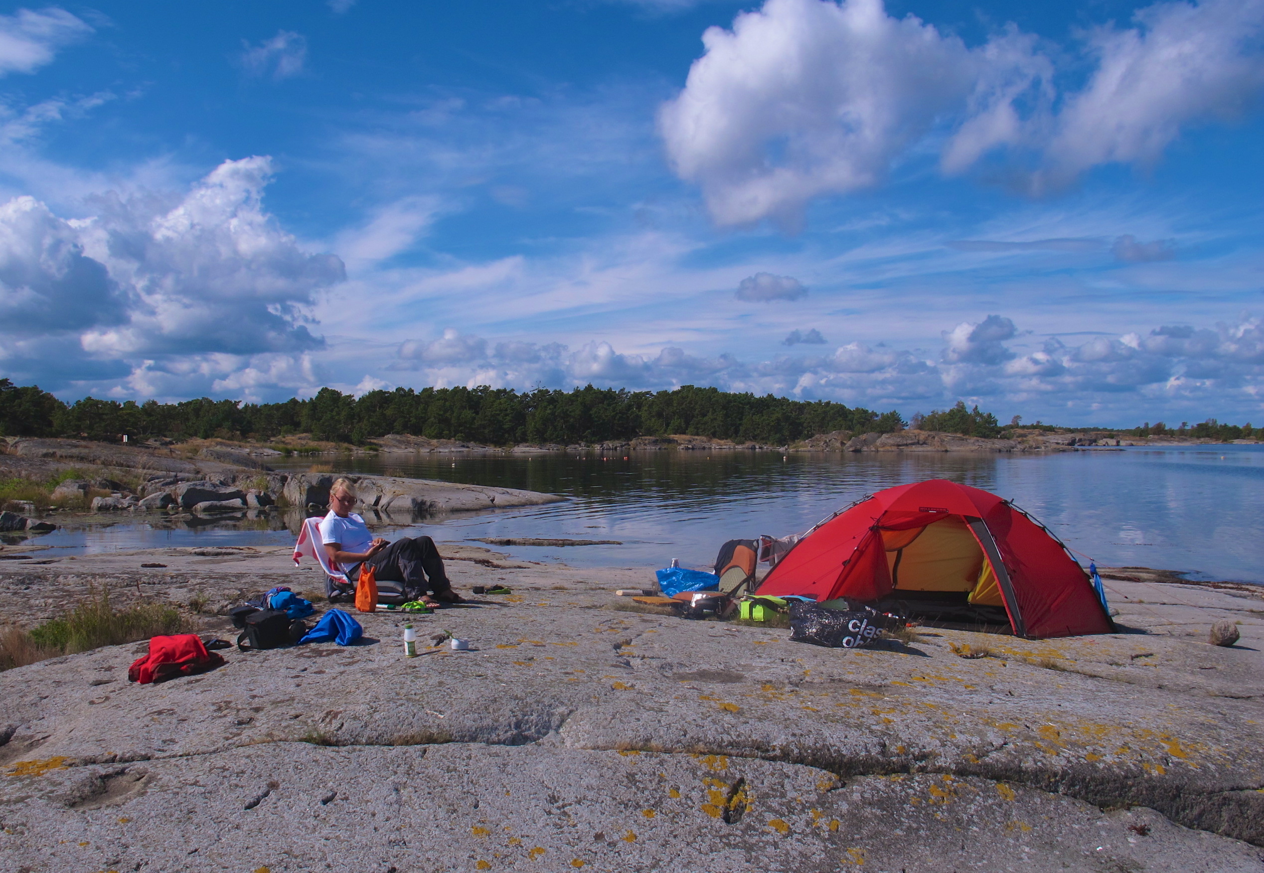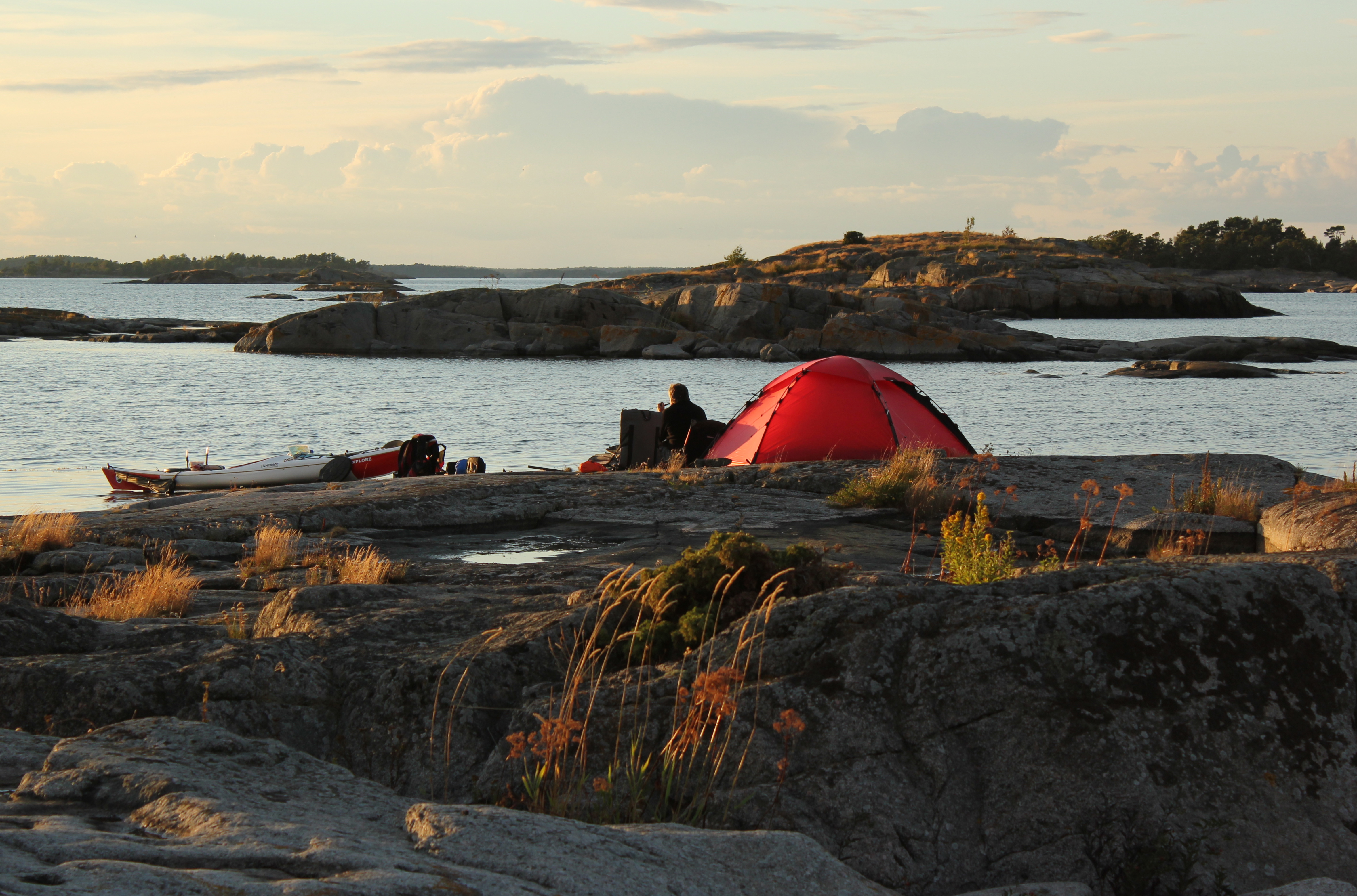 På vår väg till Örö mellanlandade vi som vanligt på Lilla Bergö för en tältnatt med lite ljug vid brasan. Challan och Jesper dök upp på kvällskvisten i det småländska kolmörkret. Vem hade väntat något annat? Skönt att gänget håller på traditionerna, eller hur? 🙂