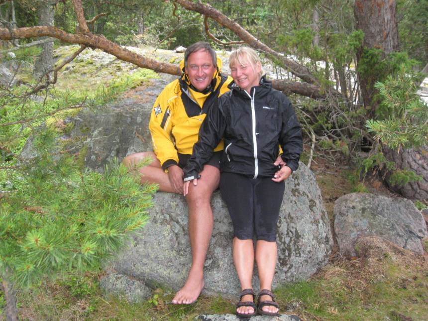 Efter lång och sen frukost synkade vi planen med Charlotte och Jesper som paddlat ner till Huvfallsö där ett gäng Malmö-paddlare väntade. Målet för midsommarafton var fina vackra Klåvskär, en av våra favoritöar som vi så gärna ville visa för resten av gänget. Klåvskär ligger ju 4-5 km norr om en annan favorit, Örö. Givetvis paddlade vi inom om Örö och önskade Elisabet och Owe en Glad Midsommar.