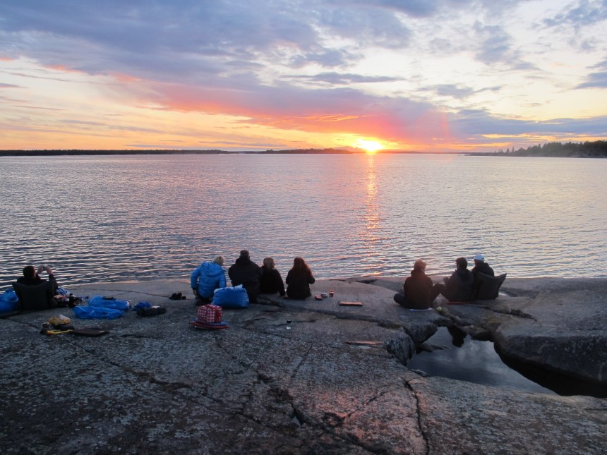 Helene, Stefan och jag började helgen med en mysig nattpaddling till Lilla Bergö där Kenneth och Kerstin väntade. De sov som stockar när vi kom fram strax efter midnatt. Inte mycket till välkomstkommitté där inte, och definitivt ingen ”kommaframmare”. Vi löste det själva med en skvätt god whisky och klockan var närmre 2 innan vi kröp in i tälten. Riktigt mysigt att snacka i den sköna ljusa natten på en solvarm klippa.