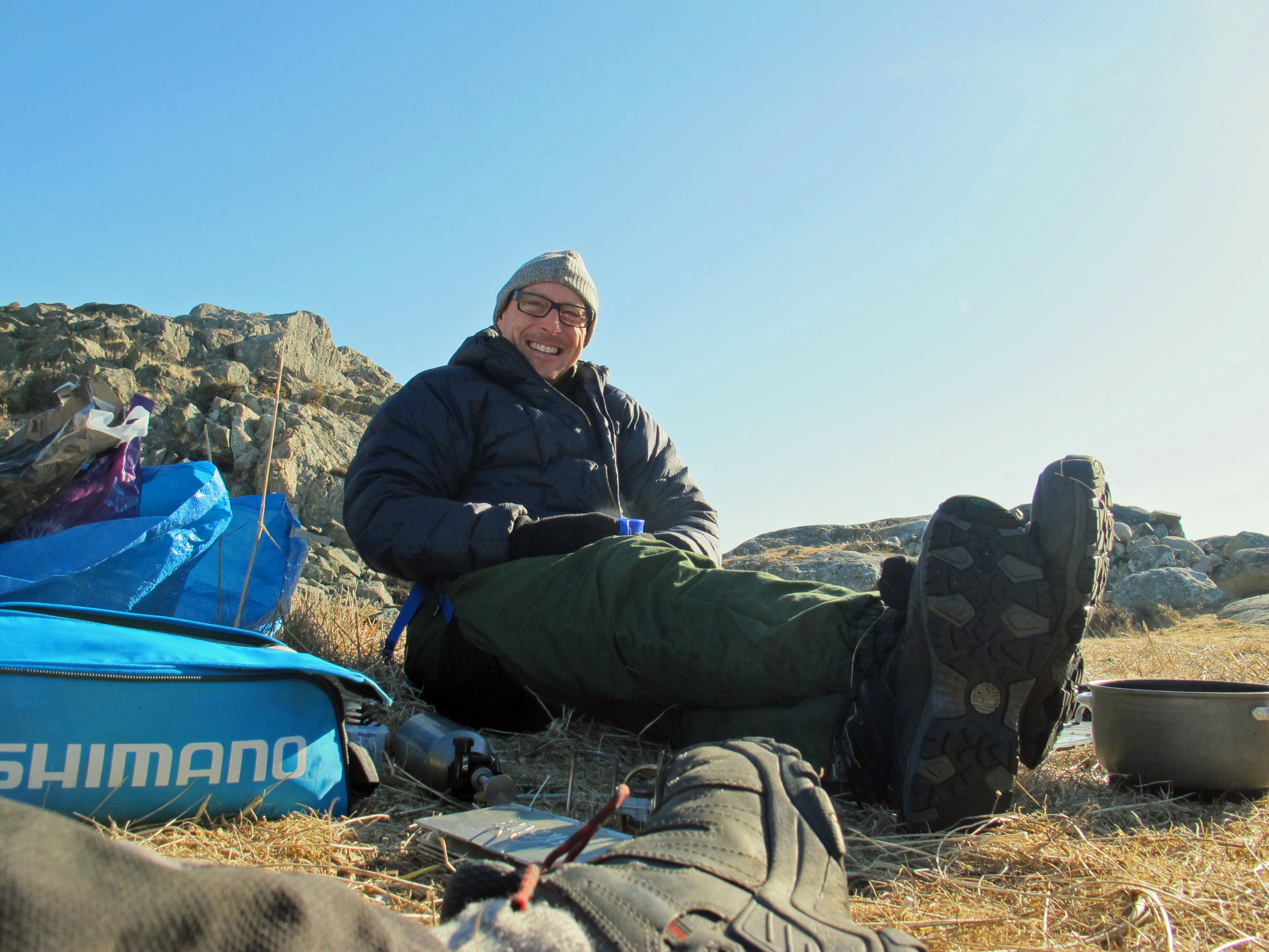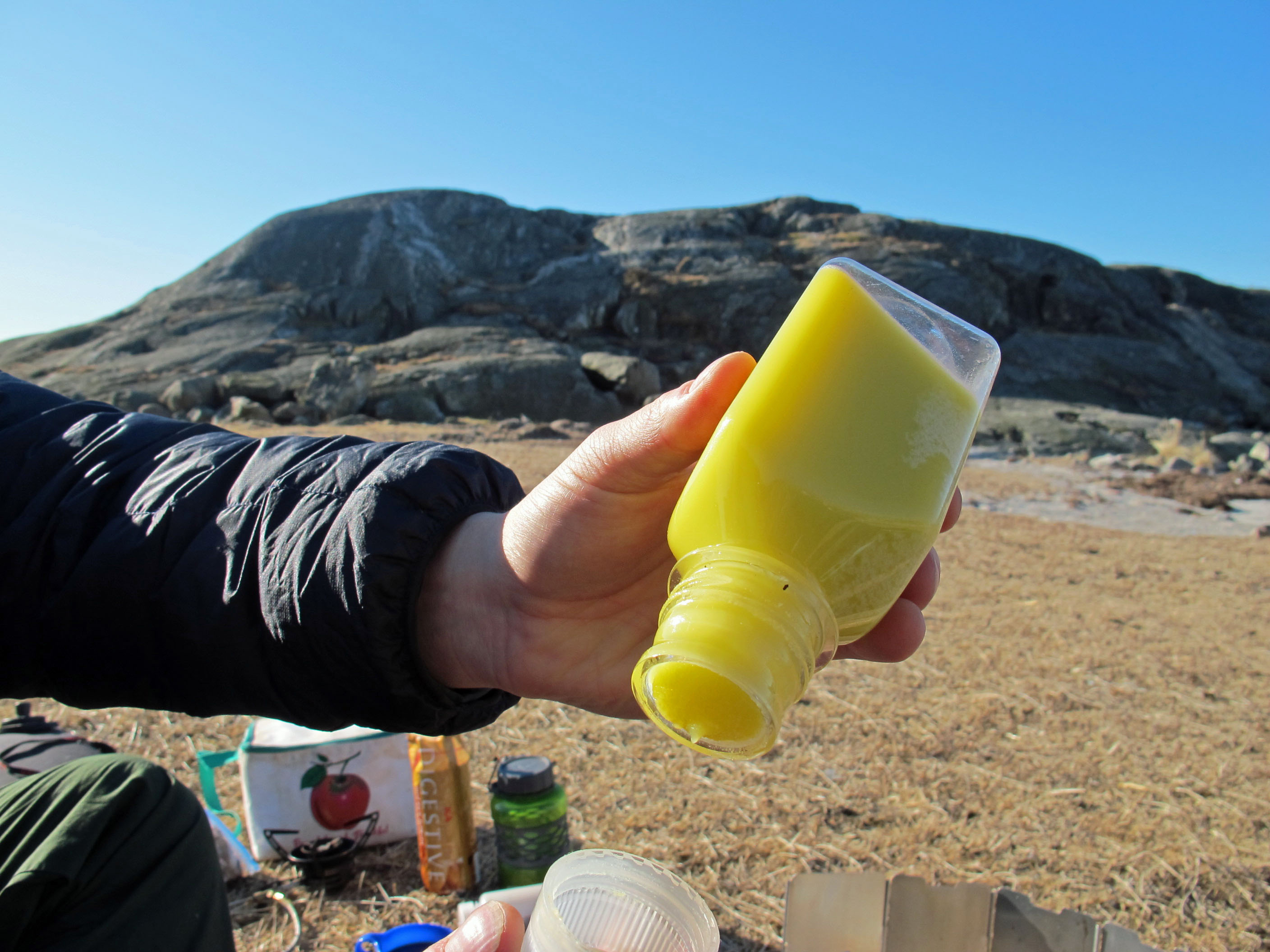 Packningsstöket avklarat – nu börjar det liksom på riktigt. En liten fika på vägen ut är aldrig fel. Inte för att vi var särskilt hungriga, utan mer för att njuta och mysa i det fina höstvädret.